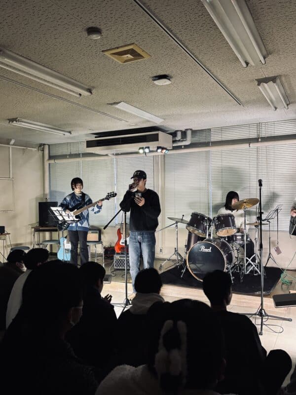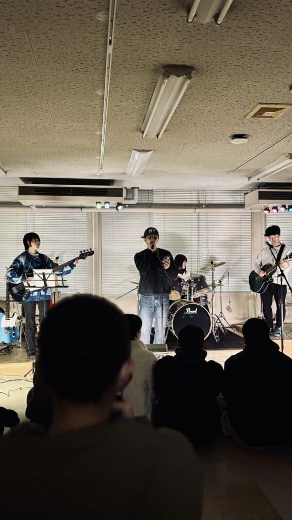 軽音学部3年生「ラストライブ2026」 2026.01.09 その他 軽音学部3年生のラストライブを開催しました! これまで、学園祭ライブ、クリスマスライブなどで演奏してきました。 楽器初心者も経験者もいて、何度も練習を重ね、部員みんなで作り上げたライブでした。 見に来てくれた、学生、先生、事務職員のみなさん、ありがとうございました! « 前の記事へ一覧